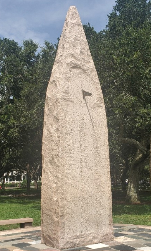 - A 20-ft (6m) high stone monument with a 2-ft (0.6m) side at the base holds a vertical reclining sundial. The monument at the base includes stones from the thirty-eight home states of those lost at sead during the collision of the USS Hobson (DD-464) and USS Wasp (CV-18). Embedded in the in the monument is a bronze arrow, pointing to the unmarked graves in the Atlantic.
